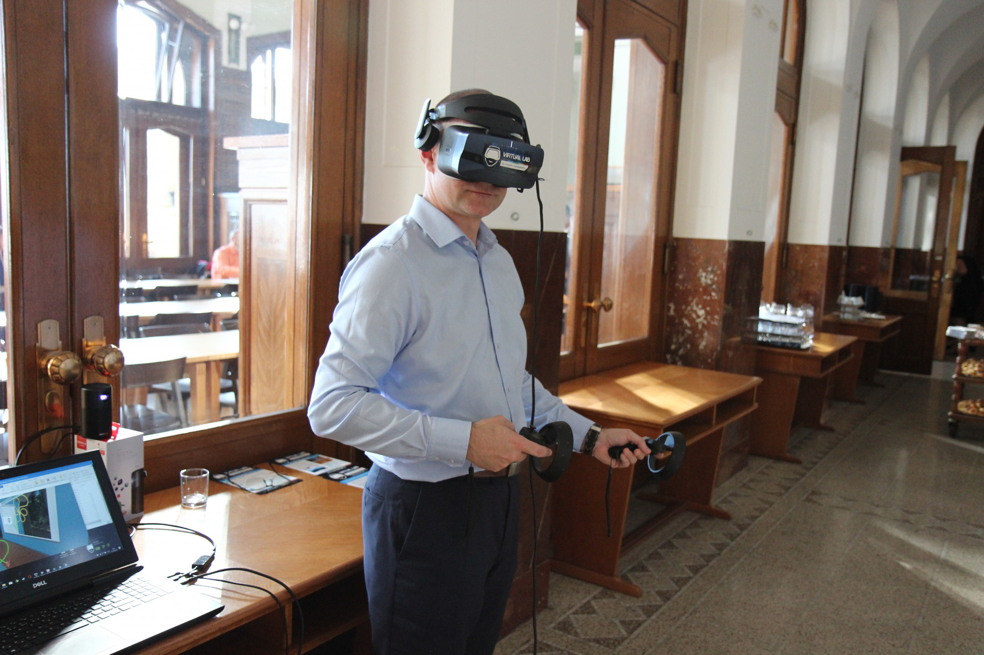 Dalším tématem setkání byla prezentace inovativních a společensky významných výsledků, které vznikly ve spolupráci mezi podnikatelskou a výzkumnou sférou v rámci RIS3 strategie v regionech České republiky. Za Jihočeský kraj se představil start-up Virtual Lab, s.r.o. zasídlený v Jihočeském vědeckotechnickém parku, který vyvíjí unikátní aplikaci pro spolupráci na dálku ve virtuální realitě Let’s meet VR. Zástupce firmy Leoš Kubíček nejprve vysvětlil podstatu vyvíjené aplikace, potom si ji zájemci mohli ve 3D brýlích vyzkoušet a diskutovat o možnostech jejího využití.
